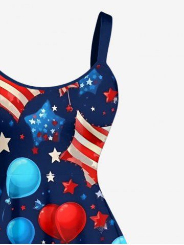 Plus Size Patriotic American Flag Balloon Star Print A Line Dress - Deep Blue - M