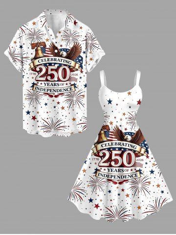 Plus Size Patriotic American Flag Bell Eagle Fireworks Print Tank Dress - White - Xs