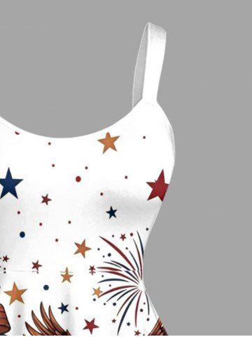 Plus Size Patriotic American Flag Bell Eagle Fireworks Print Tank Dress - White - M