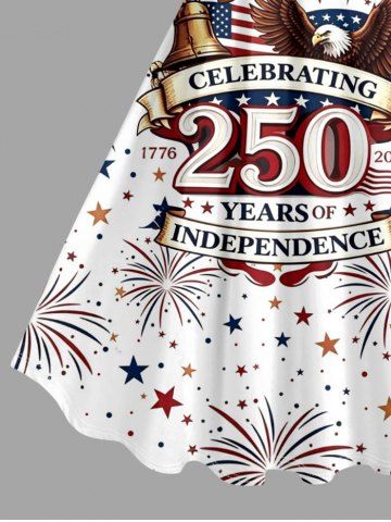 Plus Size Patriotic American Flag Bell Eagle Fireworks Print Tank Dress - White - 5x