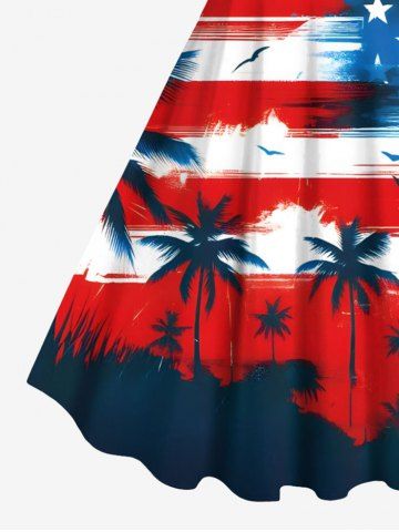 Plus Size Patriotic American Flag Coconut Tree Bird Print Hawaii Tank Dress - Red - Xxs