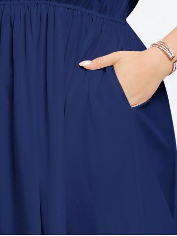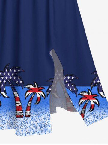 Plus Size Patriotic American Flag Coconut Tree Contrast Colorblock Print Hawaii Split Pocket A Line Midi Dress - Deep Blue - 2x