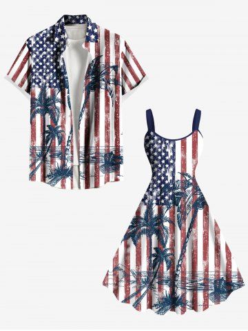 Plus Size Patriotic American Flag Coconut Tree Distressed Print Hawaii Tank Dress - Red - Xxs