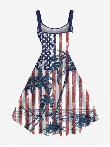American Flag Dresses > Plus Size Patriotic American Flag Coconut Tree Distressed Print Hawaii Tank Dress