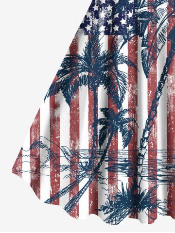 Plus Size Patriotic American Flag Coconut Tree Distressed Print Hawaii Tank Dress - Red - Xs