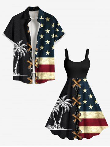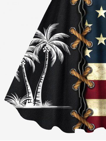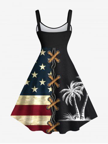 American Flag Dresses > Plus Size Patriotic American Flag Coconut Tree Lace Up 3D Print Tank Dress