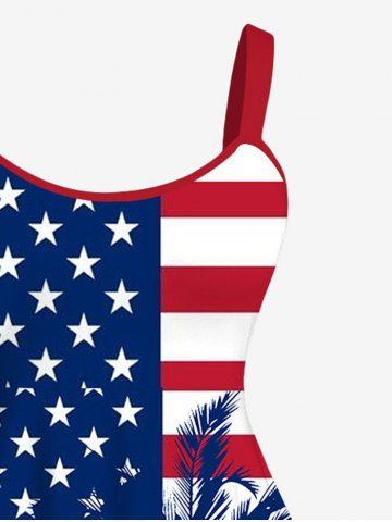 Plus Size Patriotic American Flag Coconut Tree Print Tank Dress - Multi-a - M