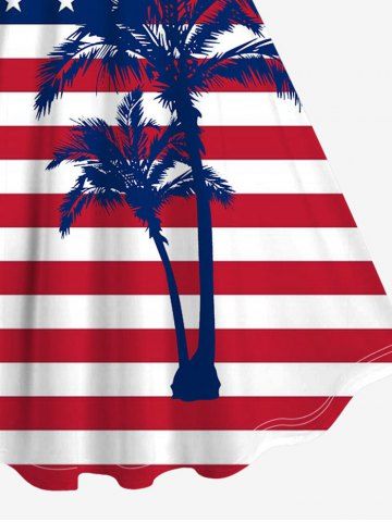 American Flag Dresses > Plus Size Patriotic American Flag Coconut Tree Print Tank Dress