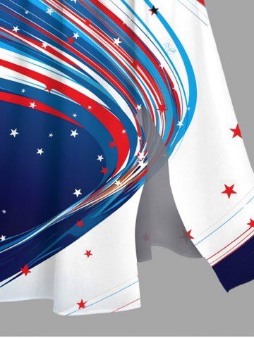 Plus Size Patriotic American Flag Colorblock Print Split Midi Dress - Blue - 1x