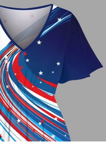 Plus Size Patriotic American Flag Colorblock Print Split Midi Dress - Blue - 2x