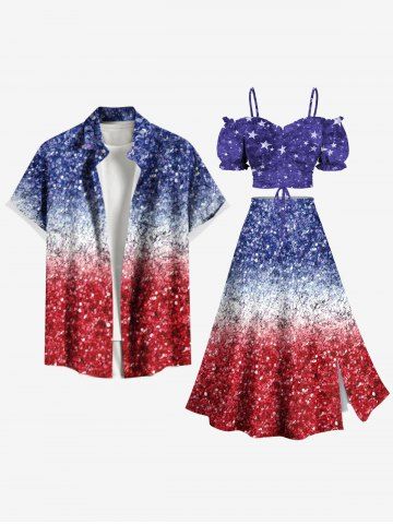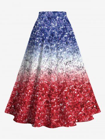 American Flag Dresses > Plus Size Patriotic American Flag Colorblock Sparkling Sequin 3D Print Split Skirt