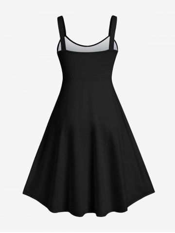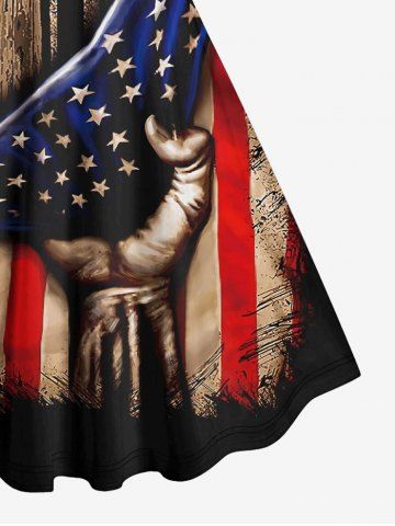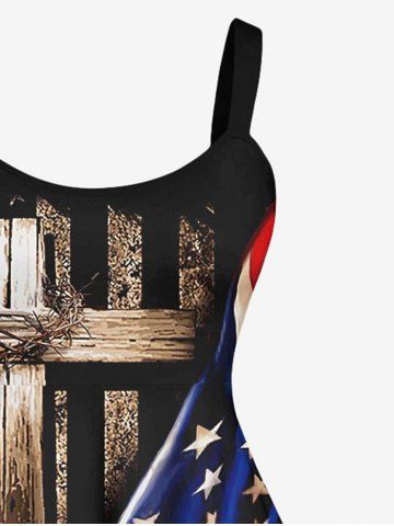 Plus Size Patriotic American Flag Cross Print Hand Printed Tank Dress - Black - 2x