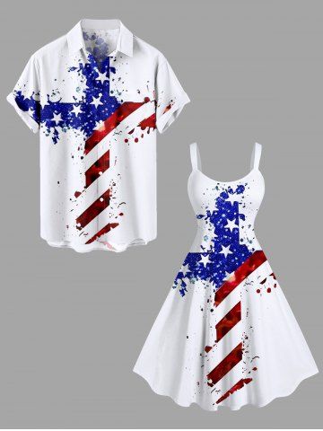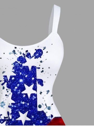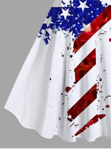 Plus Size Patriotic American Flag Cross Sparkling Sequin 3D Print Tank Dress - White - 6x