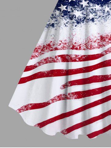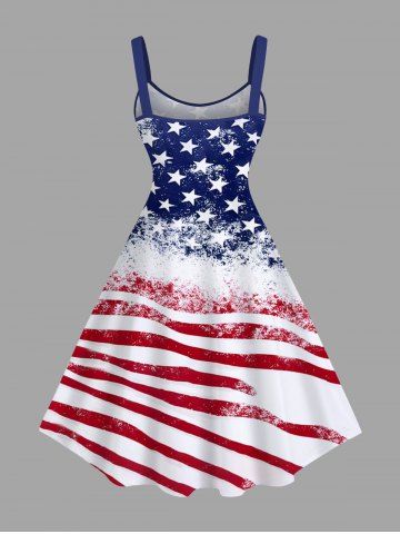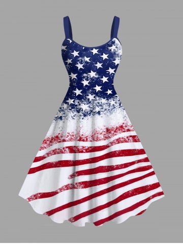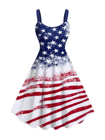 Plus Size Patriotic American Flag Distressed Print Tank Dress - Sky Blue - M