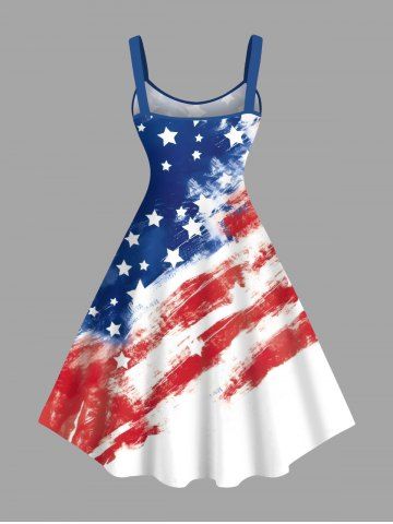 Plus Size Patriotic American Flag Distressed Print Tank Dress - White - S