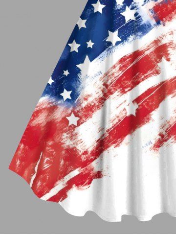 Plus Size Patriotic American Flag Distressed Print Tank Dress - White - M