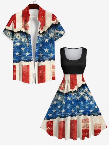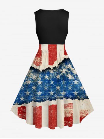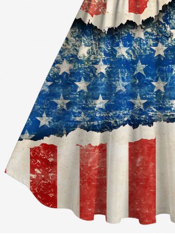 American Flag Dresses > Plus Size Patriotic American Flag Distressed Ripped 3D Print 1950s Vintage Dress