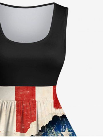 Plus Size Patriotic American Flag Distressed Ripped 3D Print 1950s Vintage Dress - Black - 2x