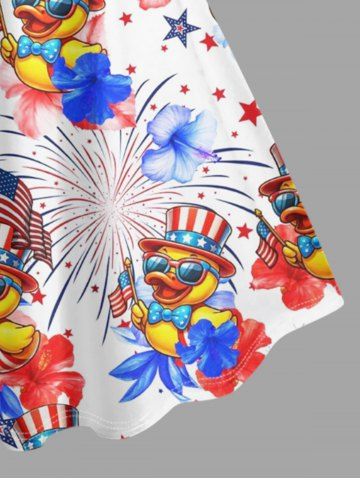 Plus Size Patriotic American Flag Duck Fireworks Print Hawaii A Line Dress - Red - Xs