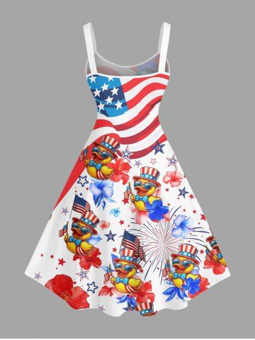 Plus Size Patriotic American Flag Duck Fireworks Print Hawaii A Line Dress - Red - L