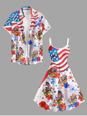 Plus Size Patriotic American Flag Duck Fireworks Print Hawaii A Line Dress - Red - 5x