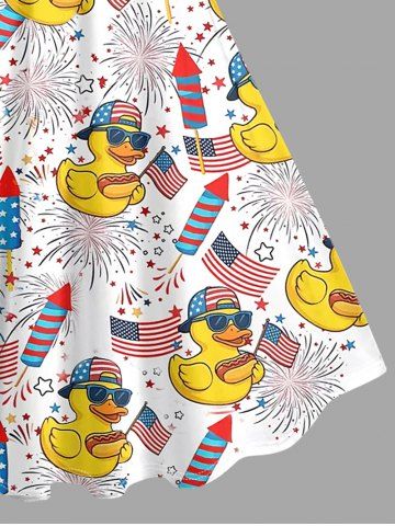 Plus Size Patriotic American Flag Duck Fireworks Print Hawaii Tank Dress - White - 2x