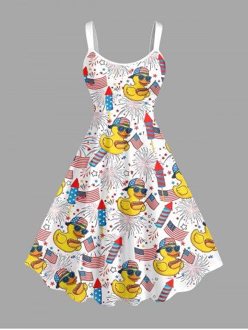 Plus Size Patriotic American Flag Duck Fireworks Print Hawaii Tank Dress - White - 6x