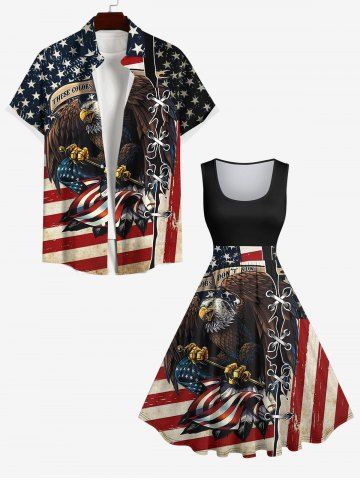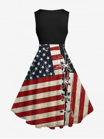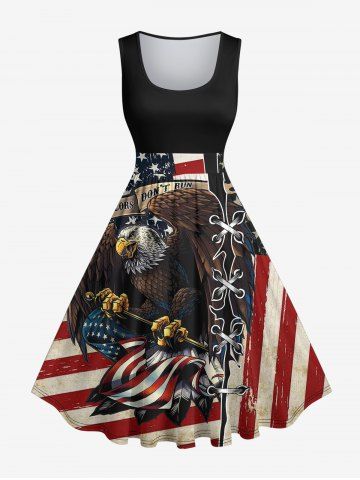 American Flag Dresses > Plus Size Patriotic American Flag Eagle Lace Up 3D Print 1950s Vintage Dress