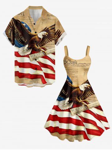 Plus Size Patriotic American Flag Eagle Newspaper Print Tank Dress - Light Coffee - 3x