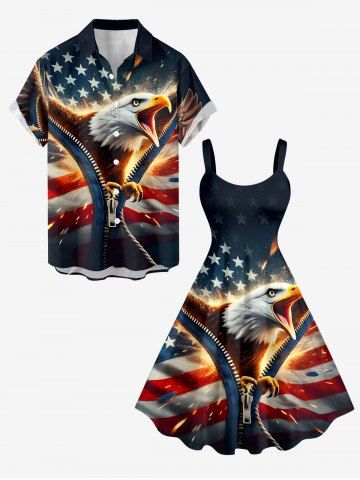American Flag Dresses > Plus Size Patriotic American Flag Eagle Print A Line Dress