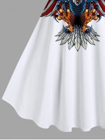 Plus Size Patriotic American Flag Eagle Print Tank Dress - White - 3x