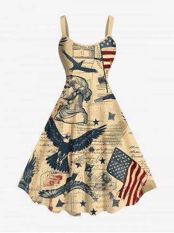 Plus Size Patriotic American Flag Eagle Sculpture Distressed Newspaper Print A Line Tank Dress - Light Coffee - Xxs