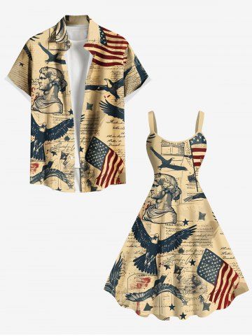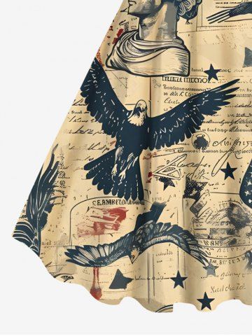 Plus Size Patriotic American Flag Eagle Sculpture Distressed Newspaper Print A Line Tank Dress - Light Coffee - 3x
