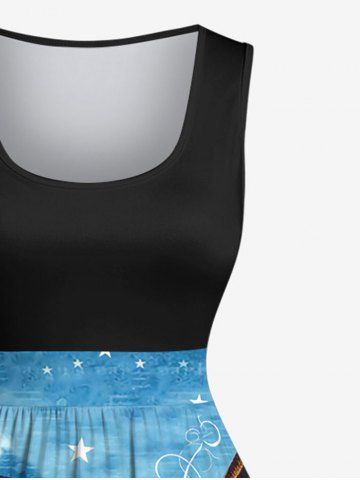 Plus Size Patriotic American Flag Eagle Stone Statue Print 1950s Vintage Dress - Multi-a - M