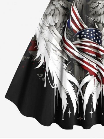 Plus Size Patriotic American Flag Feather Wing Cross Print A Line Tank Dress - Black - S