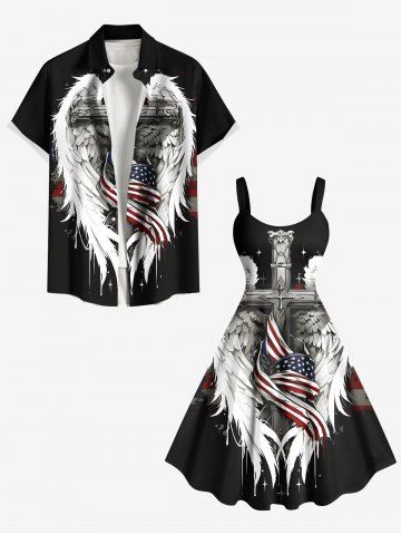 Plus Size Patriotic American Flag Feather Wing Cross Print A Line Tank Dress - Black - 4x