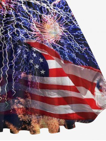 Plus Size Patriotic American Flag Firework Print 1950s Vintage Dress - Multi-a - L