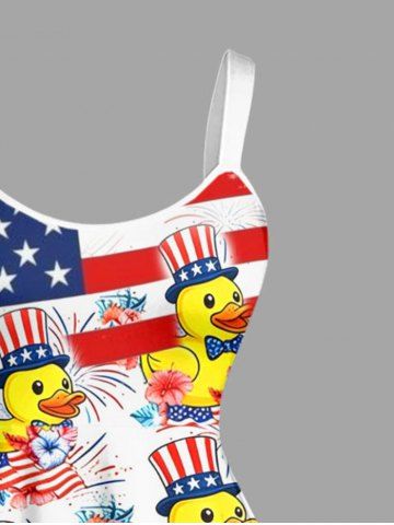 Plus Size Patriotic American Flag Fireworks Ducks Flower Print Tank Dress - White - Xs