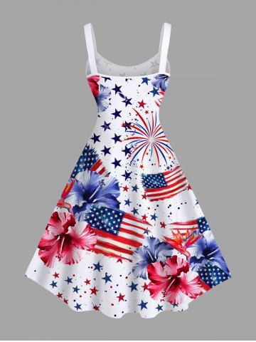 Plus Size Patriotic American Flag Fireworks Hibiscus Floral Print Hawaii A Line Tank Dress - White - 4x