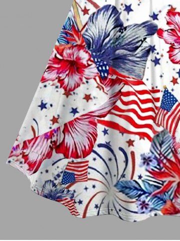 American Flag Dresses > Plus Size Patriotic American Flag Fireworks Hibiscus Flower Print Ruched Lattice Crisscross Straps Dress