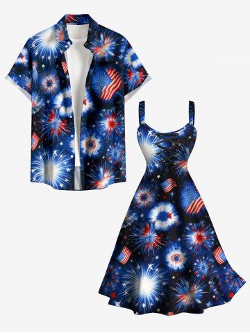 Plus Size Patriotic American Flag Fireworks Print Tank Dress - Deep Blue - 4x