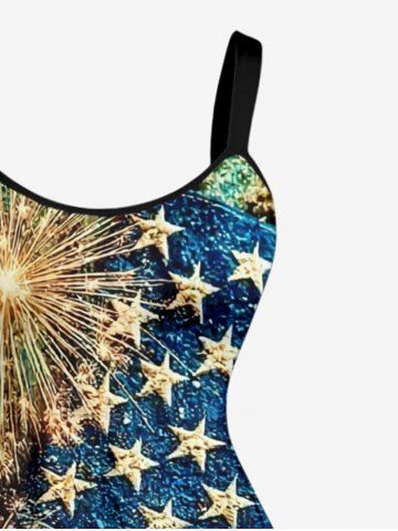 Plus Size Patriotic American Flag Fireworks Print Tank Dress - Blue - S