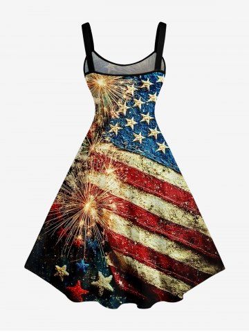 American Flag Dresses > Plus Size Patriotic American Flag Fireworks Print Tank Dress