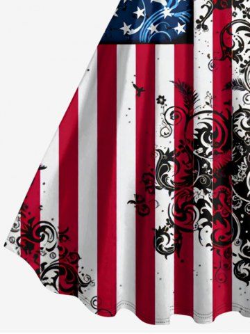 American Flag Dresses > Plus Size Patriotic American Flag Floral Pattern Print Tank Dress