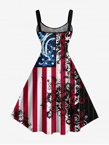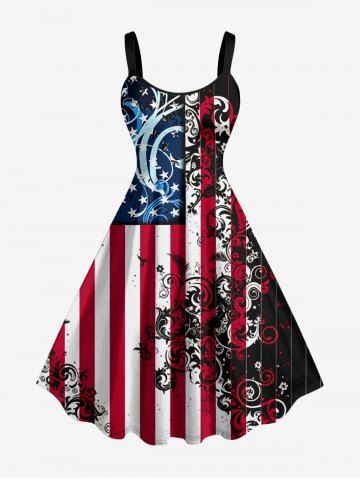 American Flag Dresses > Plus Size Patriotic American Flag Floral Pattern Print Tank Dress