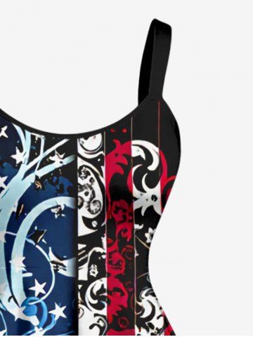 Plus Size Patriotic American Flag Floral Pattern Print Tank Dress - Blue - 3x