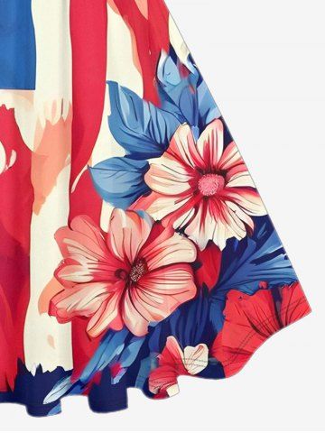 American Flag Dresses > Plus Size Patriotic American Flag Flower Print Vintage Swing A Line Dress