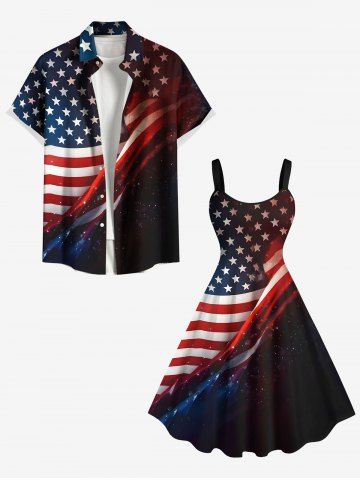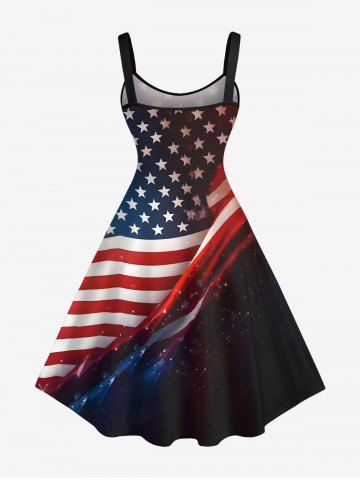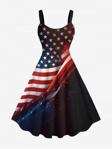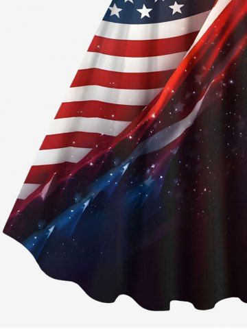 Plus Size Patriotic American Flag Galaxy Print Tank Dress - Deep Blue - S