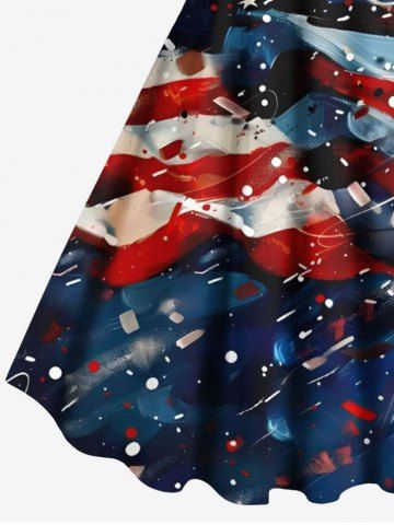Plus Size Patriotic American Flag Galaxy Print Tank Dress - Blue - M
