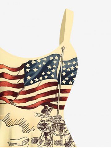 Plus Size Patriotic American Flag Horse Warrior Print Tank Dress - Light Yellow - M